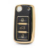 غطاء جلد نانو ذهبي عالي الجودة لسيارة فولكس فاجن فليب ريموت 3 أزرار لون أسود VW-A13J