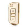 غطاء جلد نانو ذهبي عالي الجودة لمفتاح فوتون فليب ريموت 2 زر لون أبيض FT-A13J