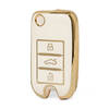 غطاء جلد نانو ذهبي عالي الجودة لمفتاح ريموت فليب 3 ازرار لون ابيض RW-A13J