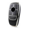 غطاء نانو عالي الجودة لمفتاح ريموت مرسيدس ثنائي الزر لون أسود إطار فضي Benz-B11Y2