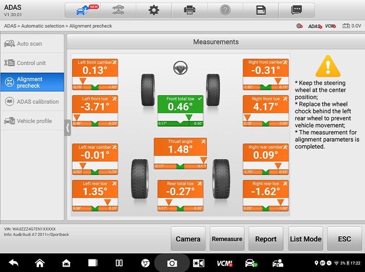 Quickly identify wheel alignment issues that can affect the accuracy of calibration.