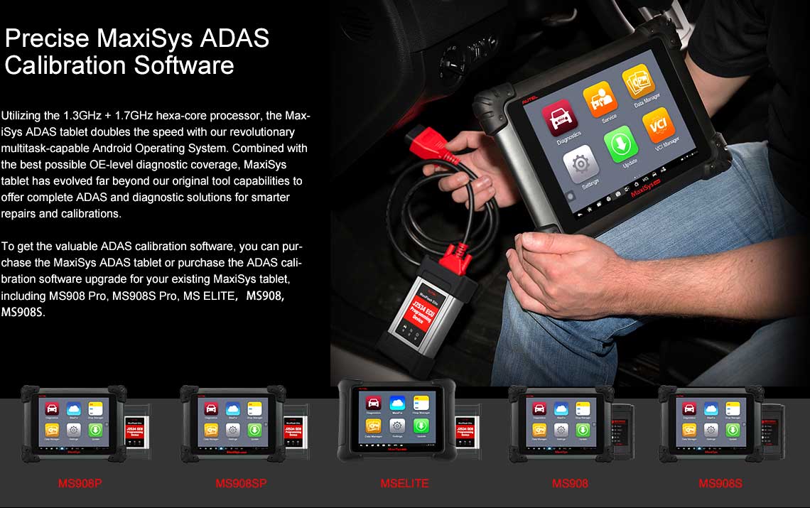 To get the valuable ADAS calibration software, you can purchase the MaxiSys ADAS tablet or purchase the ADAS calibration software upgrade for your existing MaxiSys tablet.