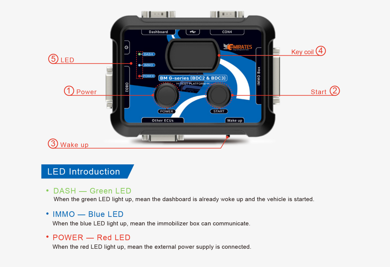 If you don't have a working key, you can use this product, connect BDC2 or BDC3 and dashboard, use CAN signal and press the bottom button, then the dashboard will be forced to wake up.