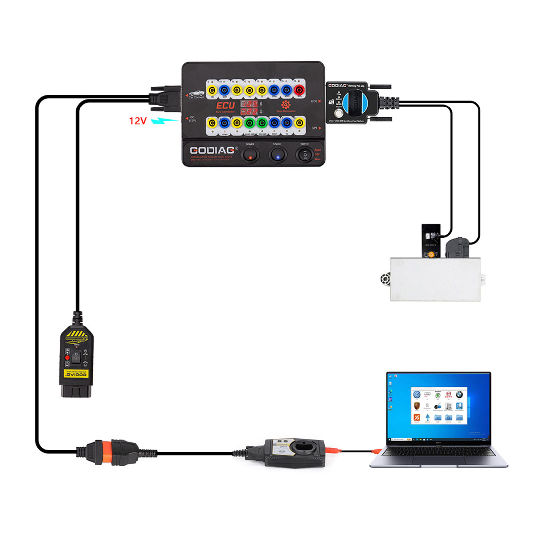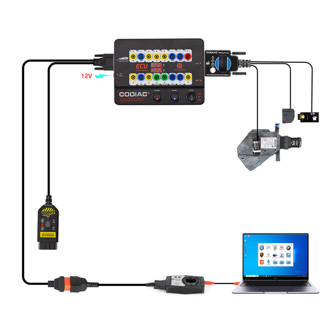 11.) Communication rapide avec un seul calculateur sur banc grâce à la connexion à l'outil de diagnostic/programmation. [Cela permet aux ingénieurs ou techniciens de réaliser le travail sur banc, tout en évitant le risque de perte de données dans d'autres modules lors des tests directs sur le véhicule.]