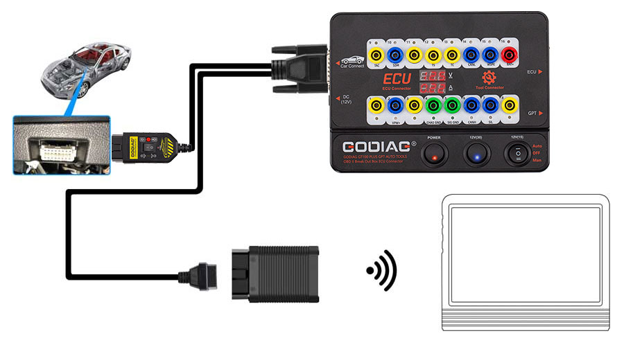 GODIAG GT100 PLUS GPT, connecté à un seul module ECU, est pratique pour un utilisateur pour effectuer le diagnostic et la programmation d'un seul module.