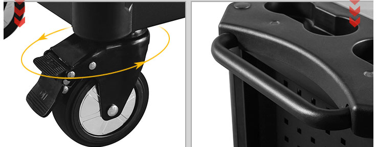 wheels to keep the chest from moving while you work. The swivel casters make the tool cart easily