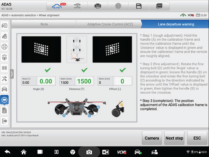 5.Il MaxiSys ADAS fornisce dimostrazioni per guidare il tecnico attraverso la calibrazione.