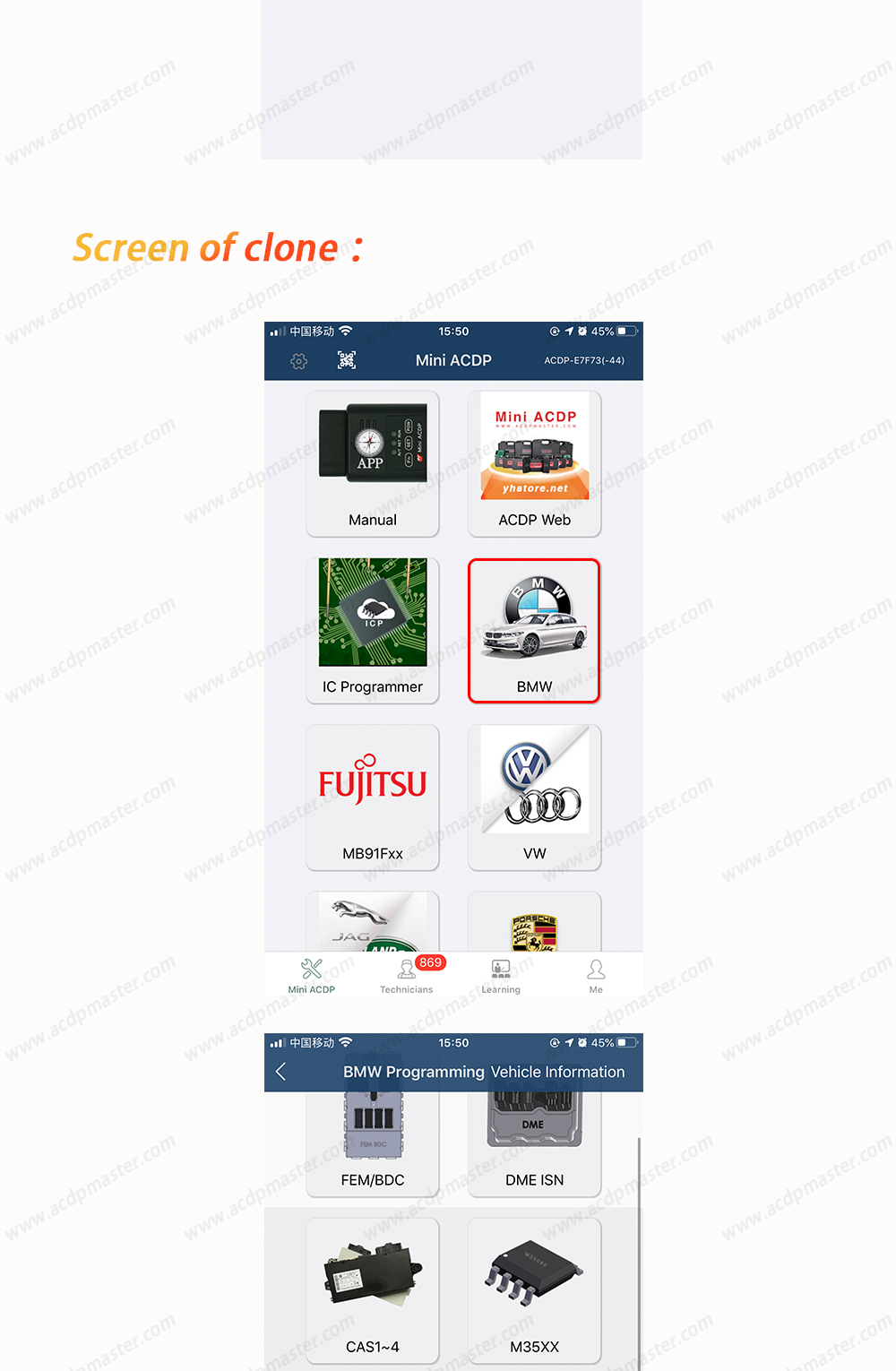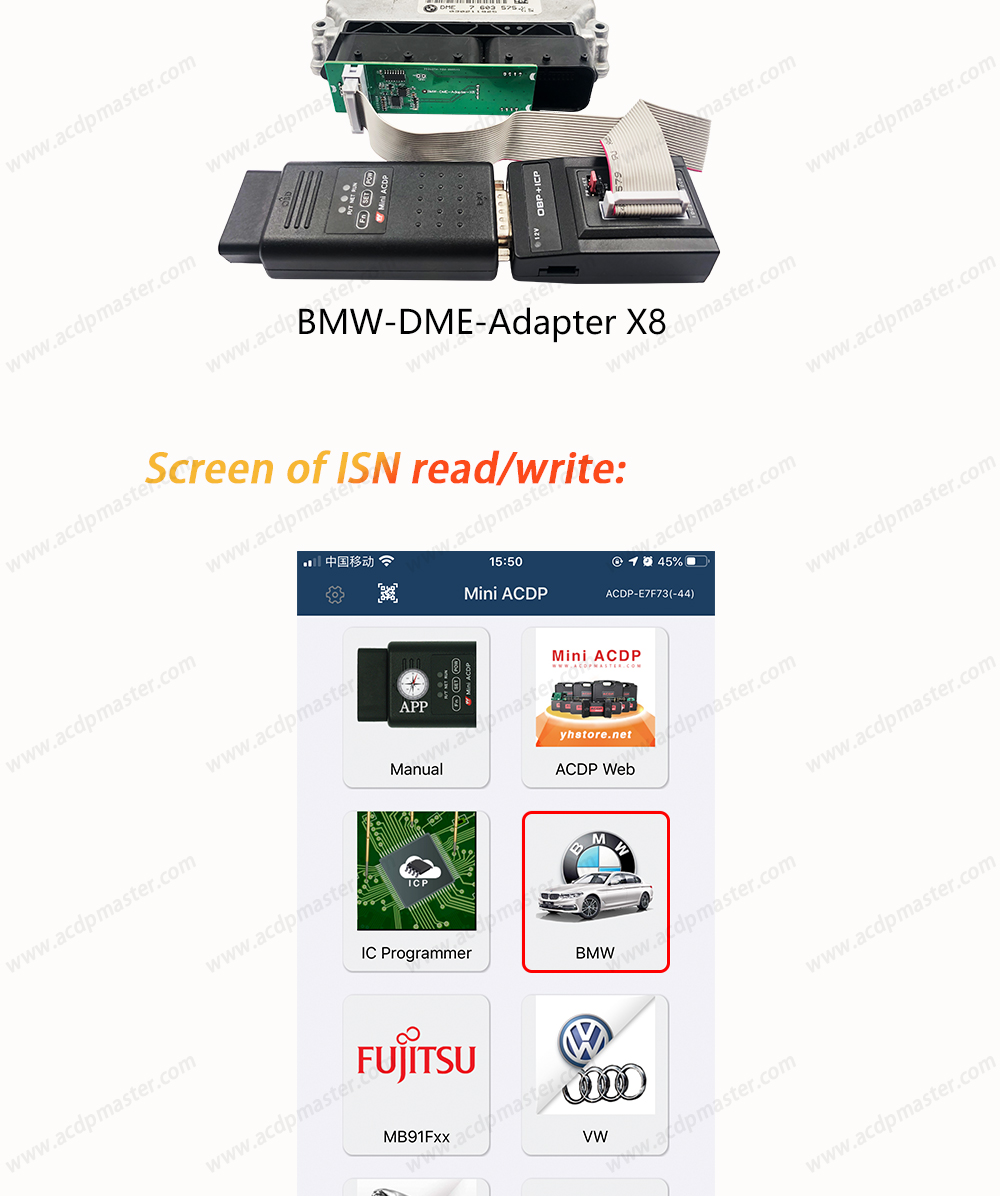Supporta telaio BMW MINI R N12/N14, telaio E N45/N46 DME ISN Lettura/scrittura e clonazione.