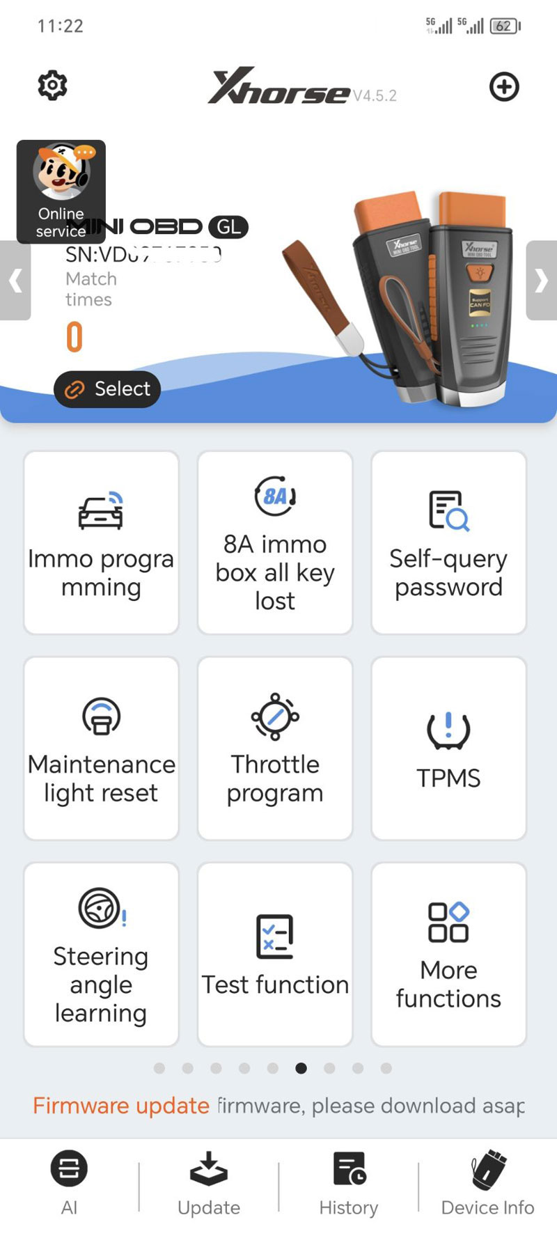Reset della spia di manutenzione, programma dell'acceleratore, TPMS, ecc.