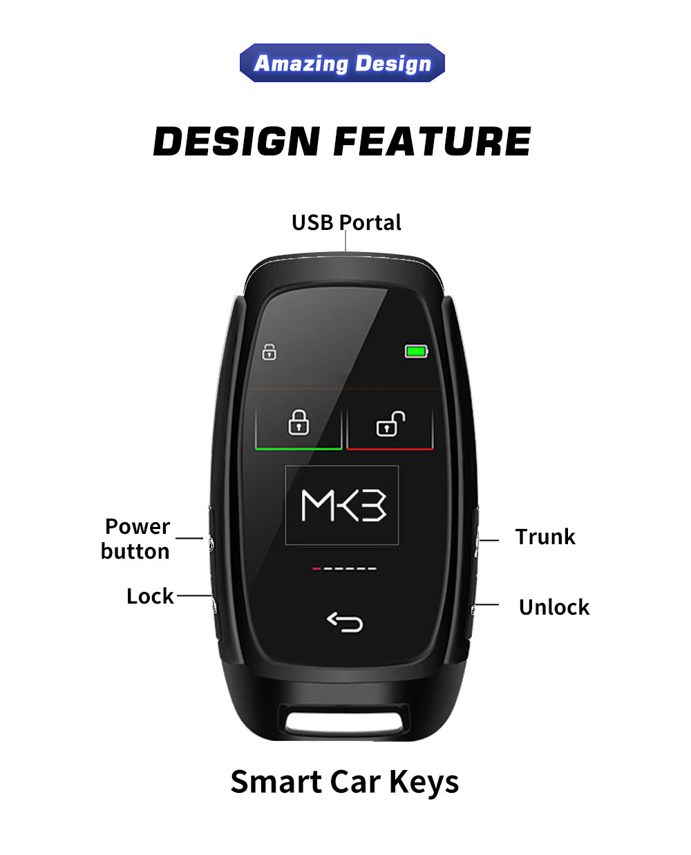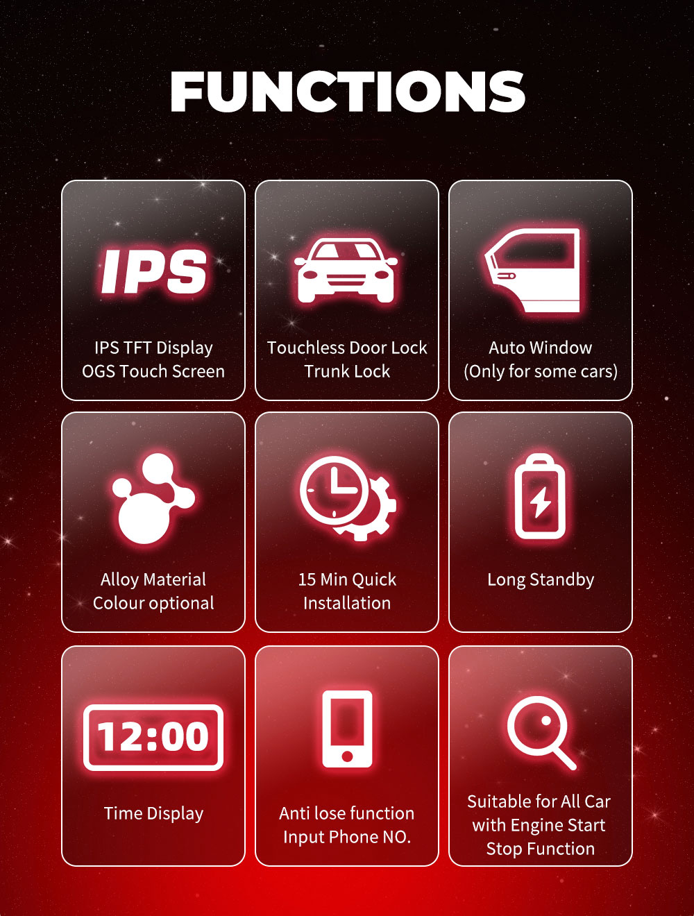 LCD Universal Smart Key Kit With Keyless Entry And IOS Car Location Tracking System Black Color