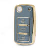 Nano High Quality Gold Leather Cover For Volkswagen Flip Remote Key 3 Buttons Gray Color VW-A13J