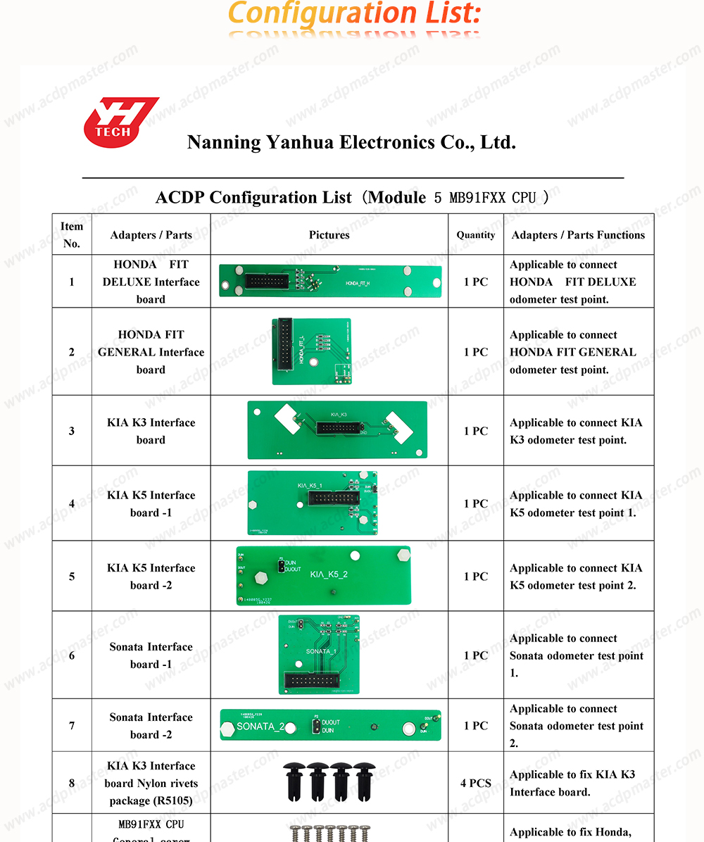 Lista de pacotes do módulo 5 do Yanhua Mini ACDP: