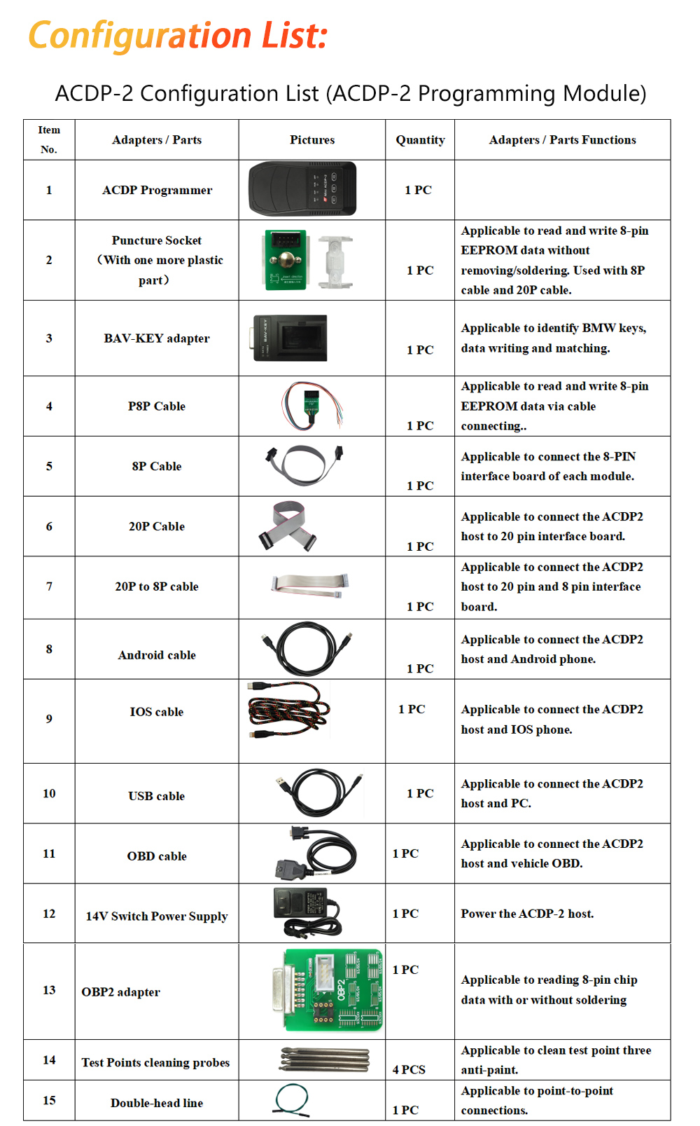Principais ferramentas de programação da YanhuaACDP com número do produto: MKON376