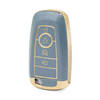Нано-высококачественный золотой кожаный чехол для дистанционного ключа Ford с 4 кнопками серого цвета Ford-B13J4