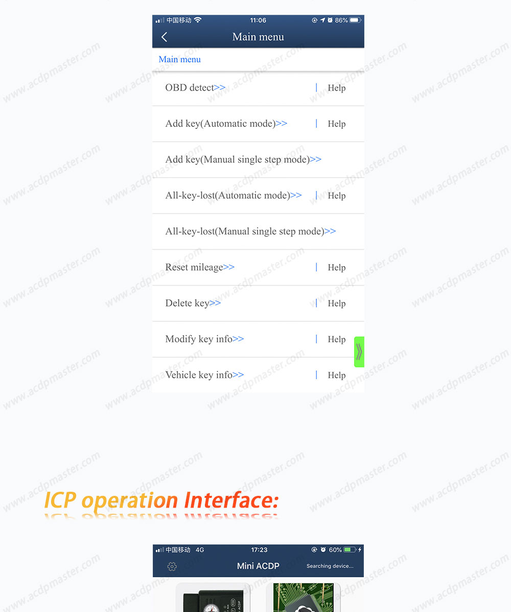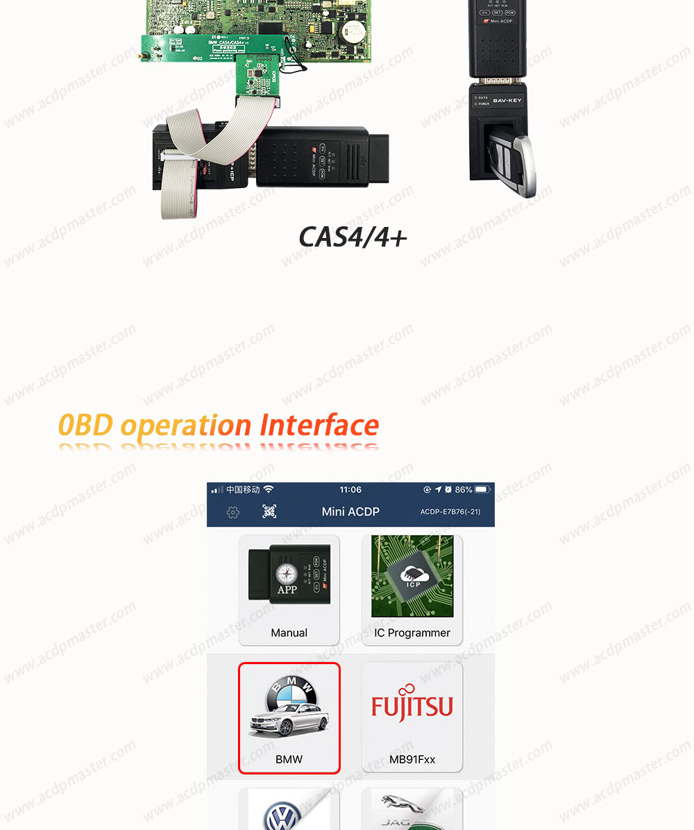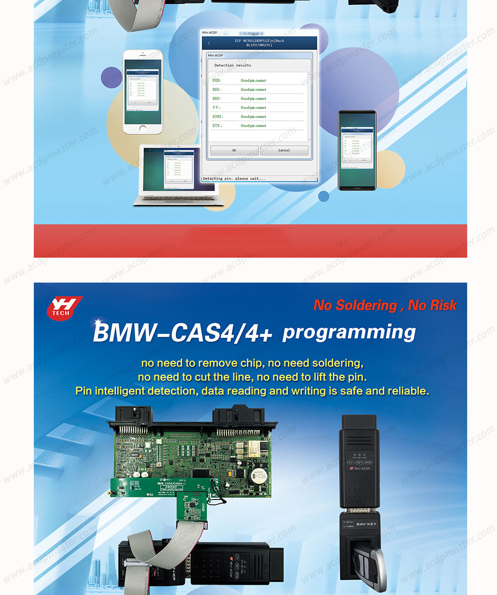 2. Support CAS3+/3++, CAS4/CAS4+ key programming, and mileage reset by ICP. Data reading and writing without lifting the pin. No removing any components, Intelligent detection.