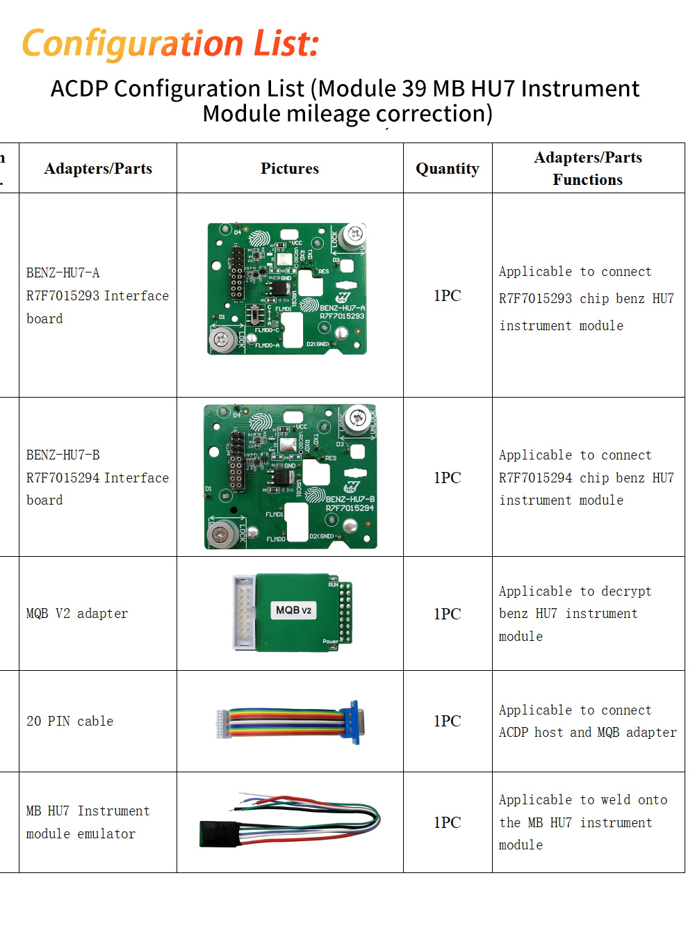 Module 39 comes with a free emulator. One car requires one emulator. The emulator prevents the instrument from going black. More emulators can be purchased separately (1 HU7 emulator/5 emulators).